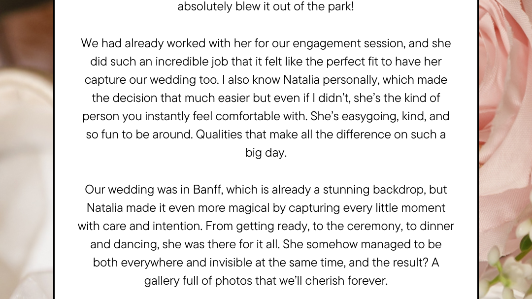 A curated selection of images from the weddings I have had the honor of photographing